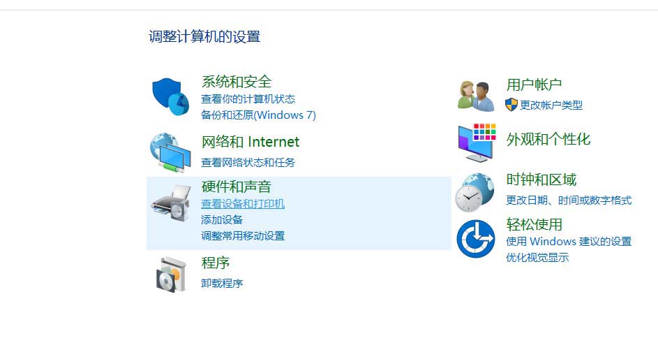 1、打開控制面板,選擇設(shè)備和打印機(jī)選項(xiàng)打開;