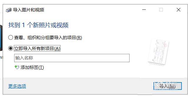 2、彈出的窗口,選擇立即導(dǎo)入所有新項(xiàng)目,點(diǎn)擊更多選項(xiàng),設(shè)置掃描件的保存位置;