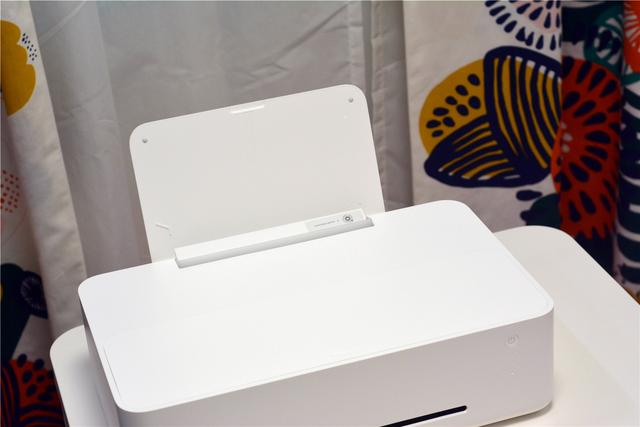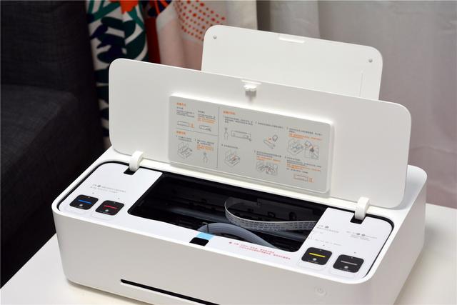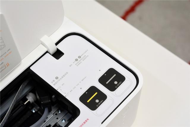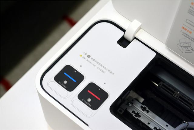 打印機的墨倉門也設(shè)計在機身頂部,其采用隱藏式的按壓開關(guān),輕點之后可以打開。