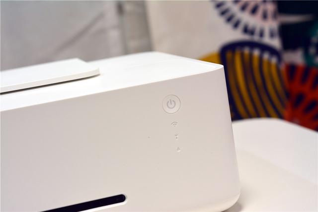 機身正面一側(cè)設(shè)計有一枚實體電源按鍵(自帶指示燈),在電源按鍵下方還有三枚指示燈,分別是WIFI指示燈,故障警示燈和低墨警示燈。