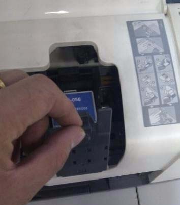3、新墨盒一定要對應相應的字母,把加好墨水新盒推進去,蓋上打印機蓋