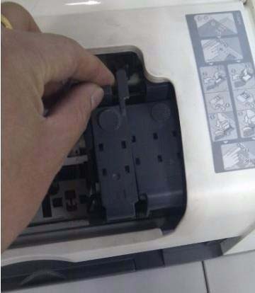 2、向上拉起要更換的墨盒的護夾。這時,墨盒會從墨盒艙中升高出一定位置,然后取出墨盒并妥善處理。