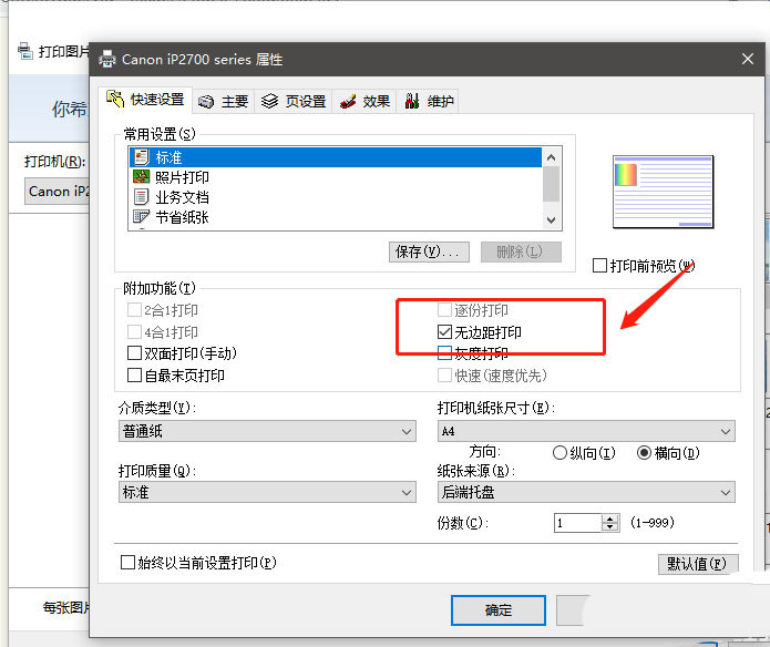 佳能G2800一體機怎么設置無邊距打印5寸照片?