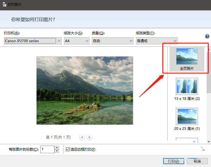 3、同時,在左側的選項中,選擇全頁照片模式;