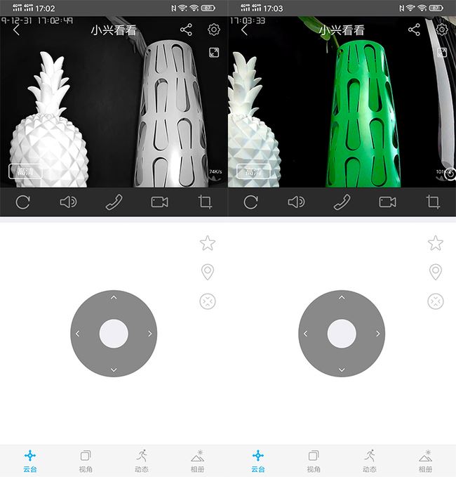 很多智能攝像頭雖然白天的畫面是彩色的,但是當晚上暗光環境下就會變成黑白畫面。小興看看則采用AI微光全彩夜視技術,在微光環境下也能有彩色的夜視畫面。