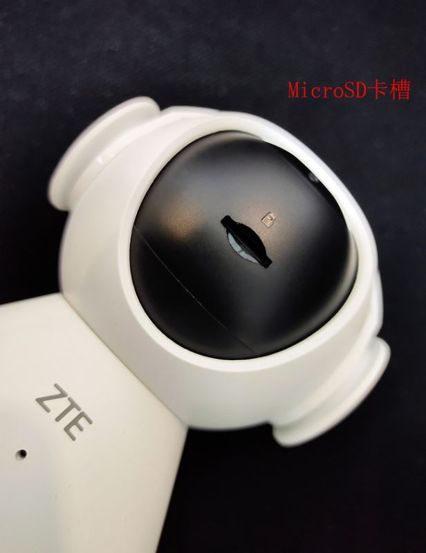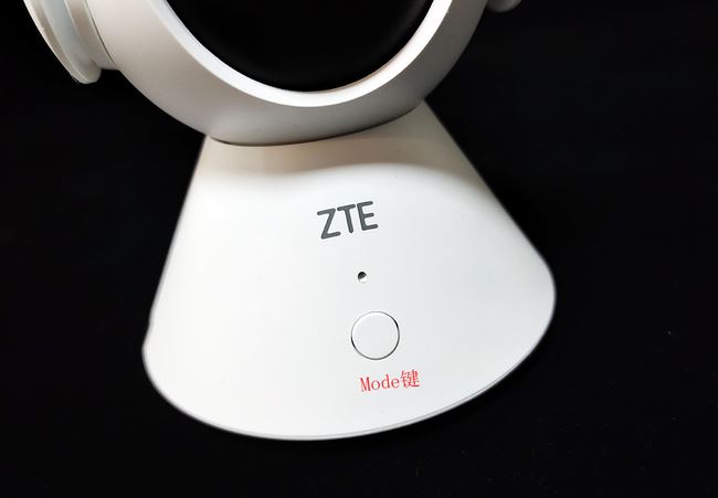 攝像頭下方是MicroSD卡槽,下方圓錐處正面為中興Logo和Mode按鈕,背面底部是USB接口和Reset按鈕,底部則是固定的螺絲。