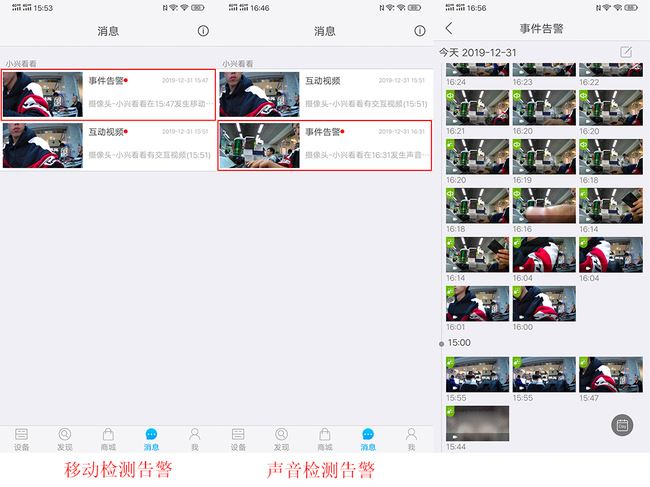此外,小興看看還有一個“移動警告”的功能,即當攝像頭捕捉到移動物體時會自動觸發錄制10s左右短視頻并發送到APP,讓你實時知曉家里或者門外的活動。