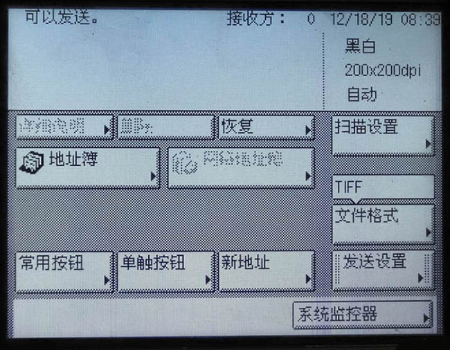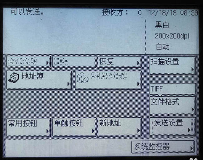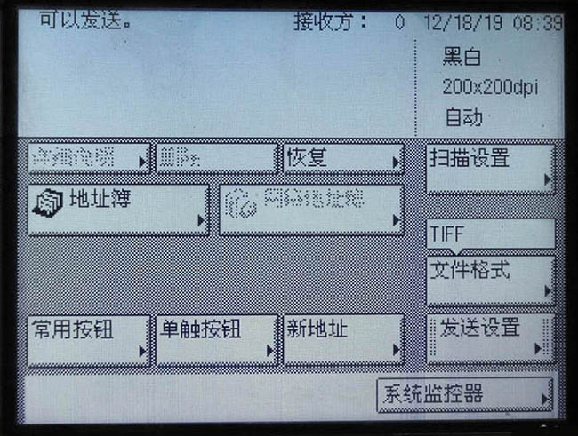 3、經過調試后界面左上角顯示(可以發送)。這個步驟在安裝打印機時已經設置好了。 缺少接收方。 單擊地址簿按鈕。進入下一步操作。