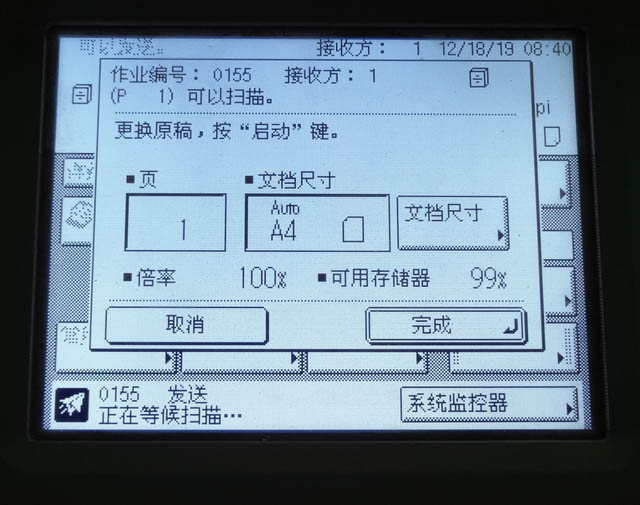 9、將文件放入打印機。 單擊啟動鍵。 開始進行掃描(發送)。