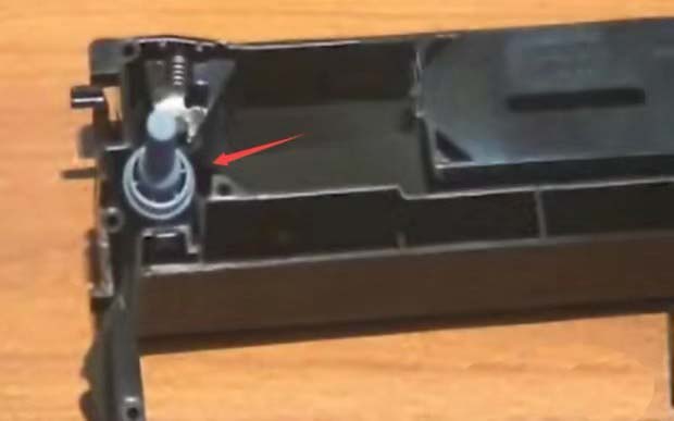 3、打開色帶盒上蓋后,將里面的色帶驅動軸取出;