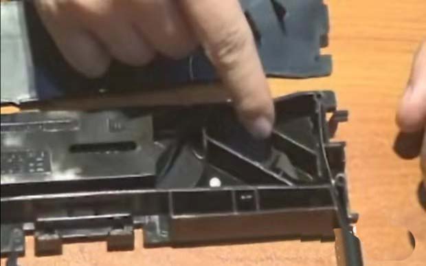 5、接著推出彈簧片,取出彈簧片之間的色帶;