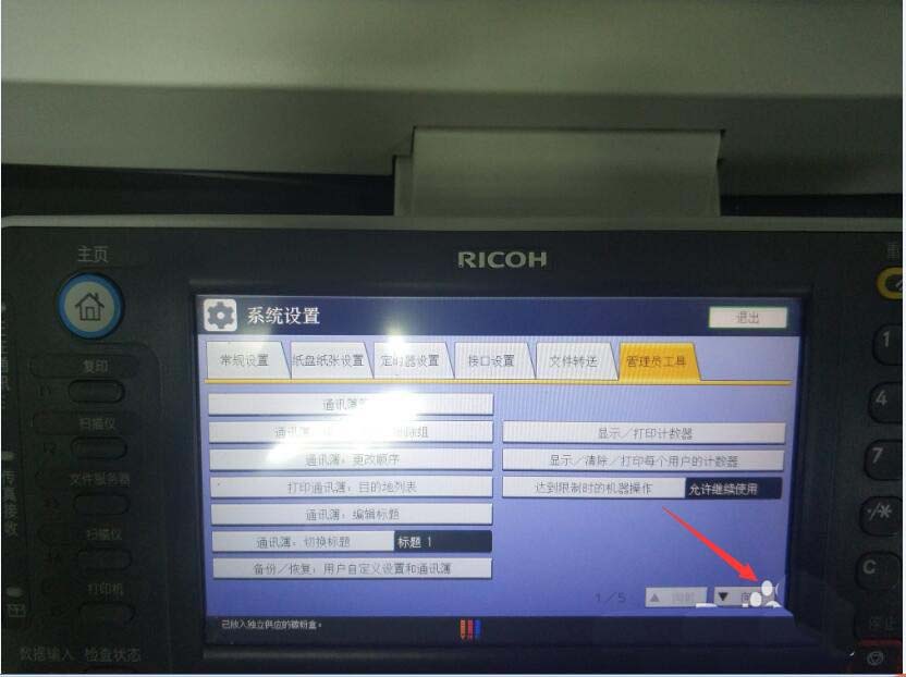 1、我們先在打印機控制面板上找到用戶工具,點擊用戶工具,進入用戶工具界面。