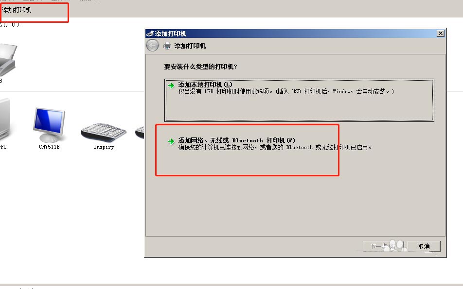 5、進(jìn)去以后,點擊添加打印機,再點擊添加無線打印機,如圖所示: