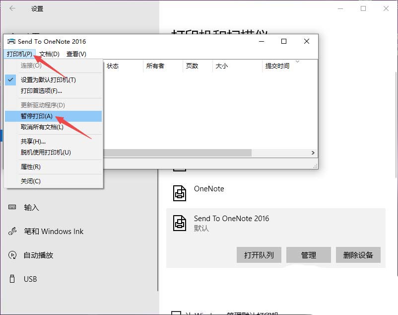 6、然后我們點擊打印機,之后我們點擊暫停打印就可以了。