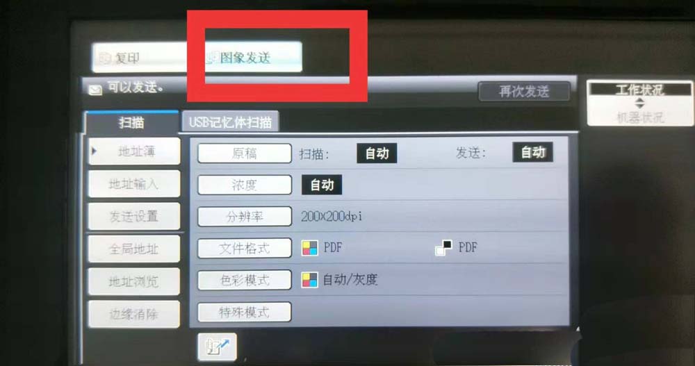 3、打開打印機的主頁面版,點擊“圖像發(fā)送”。