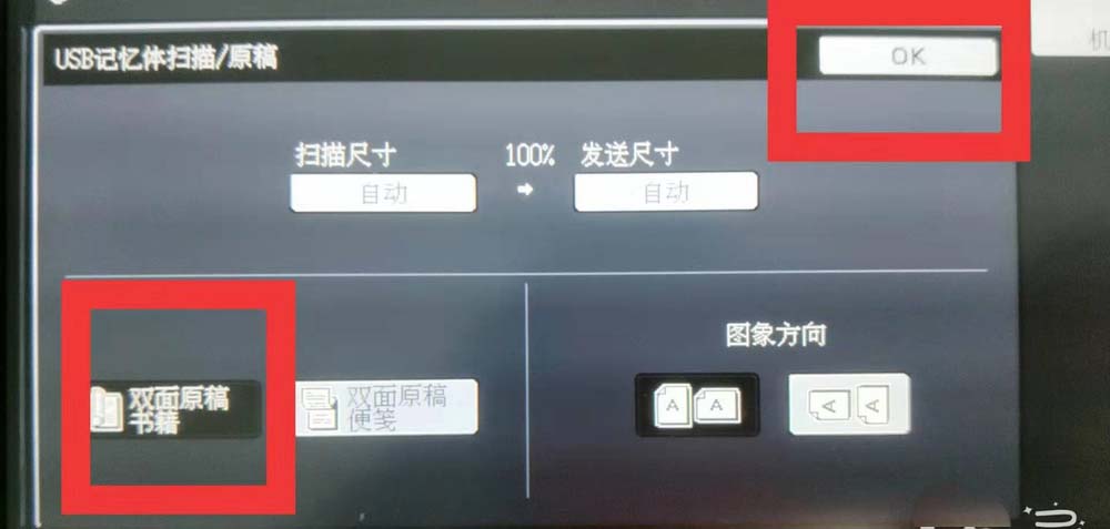 5、設置掃描格式,一般為“雙面原稿書籍”,選中后,點擊“OK”。