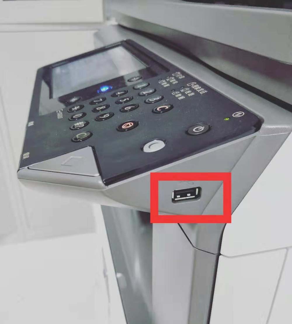 2、找到打印機右側(cè)的USB插口,插入U盤。