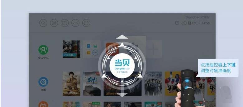 長(zhǎng)按遙控器“側(cè)邊鍵”,系統(tǒng)將會(huì)自動(dòng)對(duì)焦
