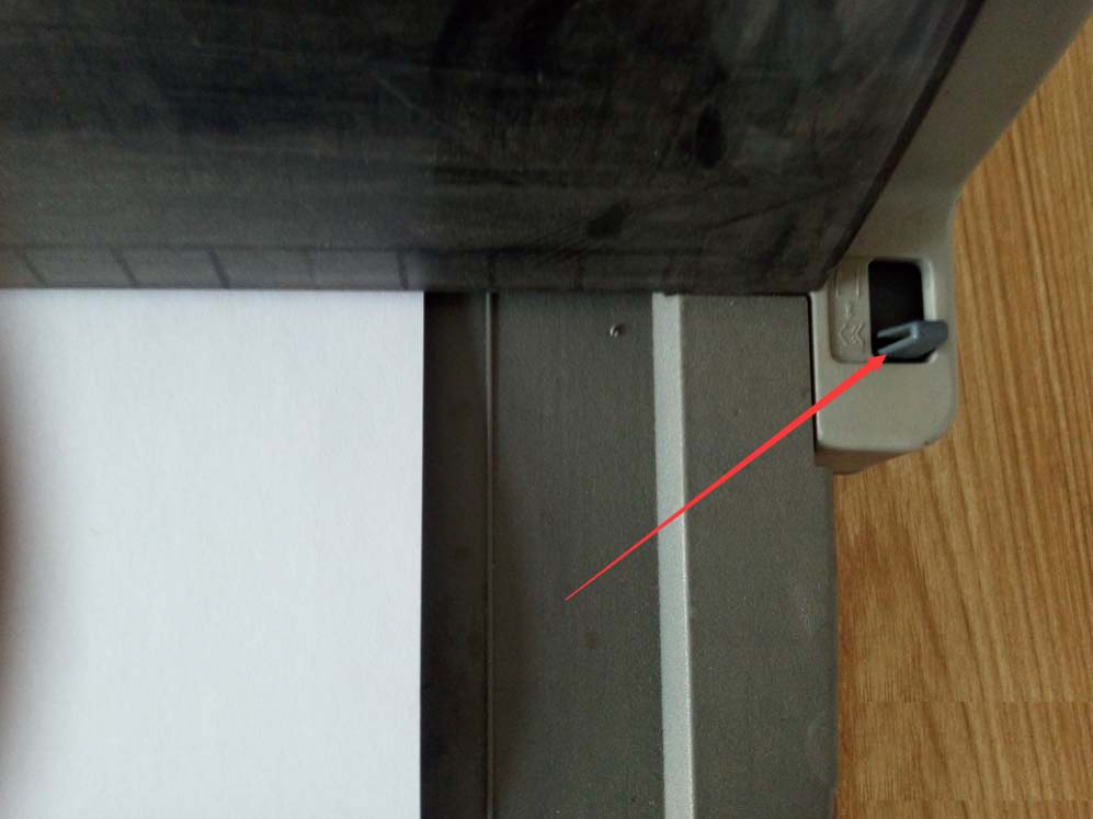 3、其次,在打印機右側(cè)可以看到拉桿,當(dāng)前狀態(tài)為禁止進紙,將拉桿推進去。