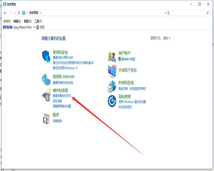 3、在控制面板里,找到設備和打印機選項,點擊。