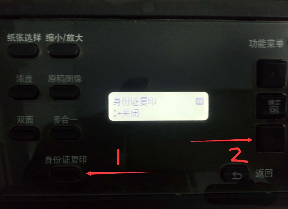1、打印機開機狀態(tài)下,按下身份證復印,并調節(jié)方向鍵下鍵改為開啟狀態(tài)。