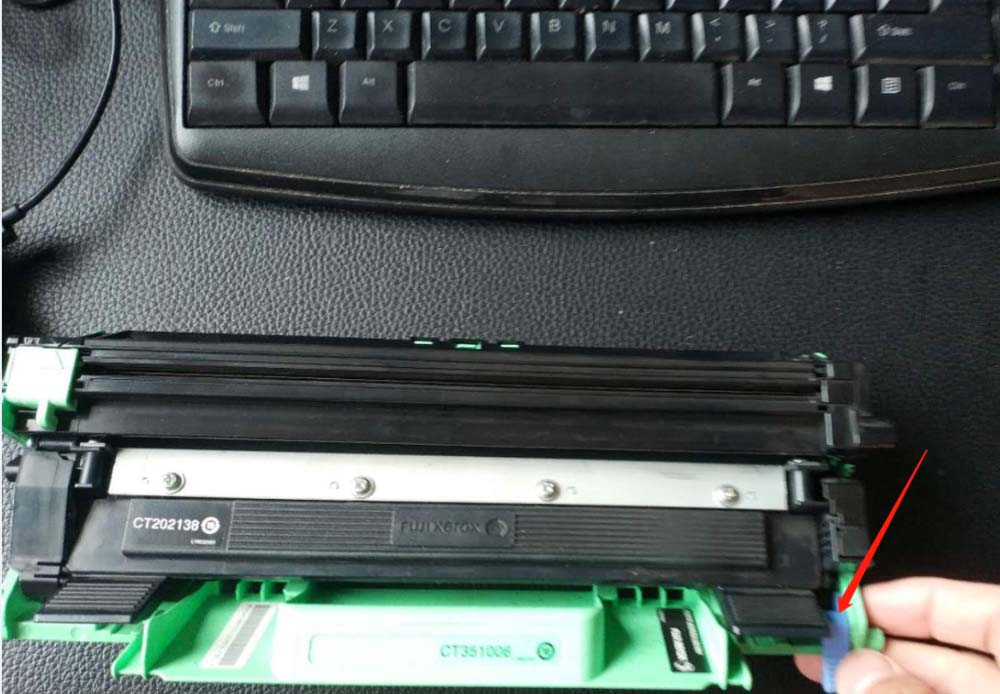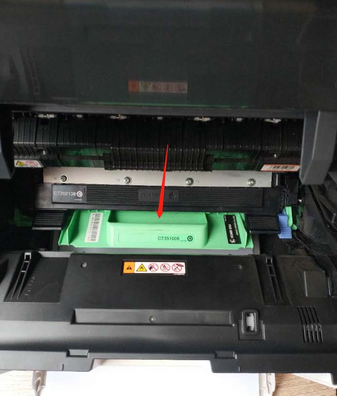 3、扣住這個綠色的凹槽,往外拉,把鼓芯墨盒取出。