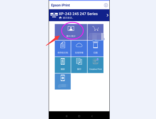 當發生上述問題時,我們可以先打開Epson iPrint ,然后點擊上方已經添加的打印機圖標,選擇維護--噴頭檢查,對噴墨情況進行一下檢測,發現藍色墨水出現斷墨現象,說明用藍色墨水的連供出現問題。
