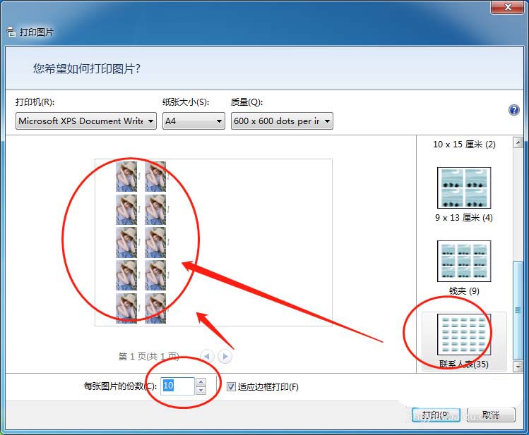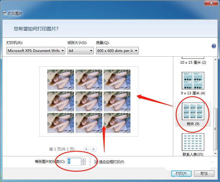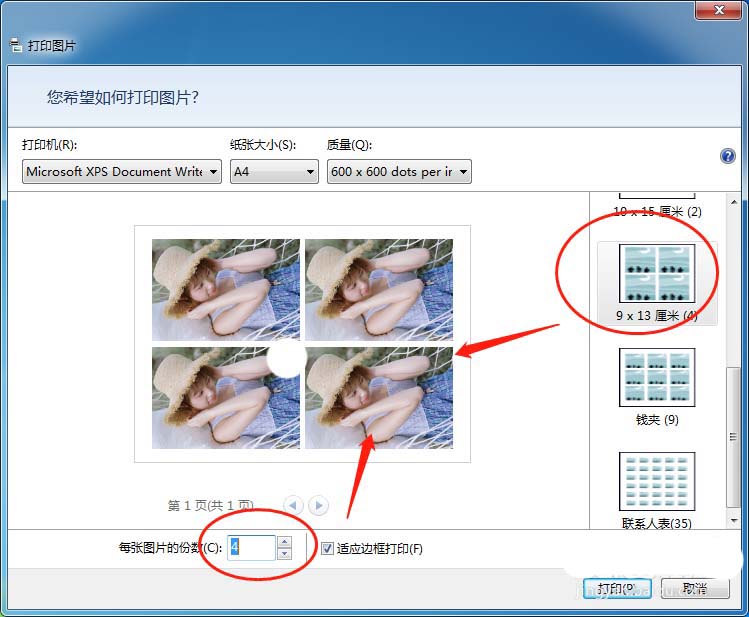 5、還可以設(shè)置4張照片打印在一張紙上面
