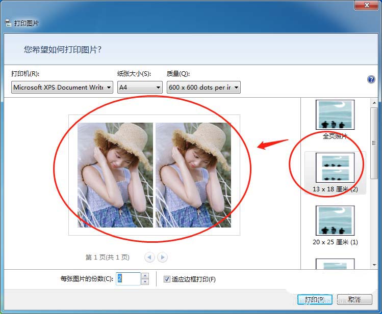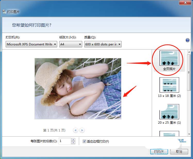 3、如果打印的照片比較大,可以設(shè)置全頁照片