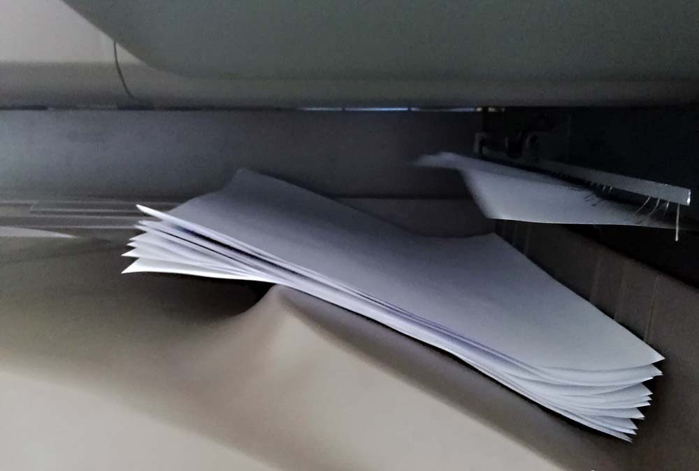 4、每出來一個復印件,主面板的份數顯示值就會減小一個,耐心等待復印完成。出紙方式如下。