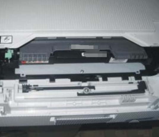 1、關機,打開前蓋,一手按住機器上的按鍵,另一只手打開開關。(就是按住啟動鍵開機,按住不放)---然后全部燈亮,就緒燈滅。