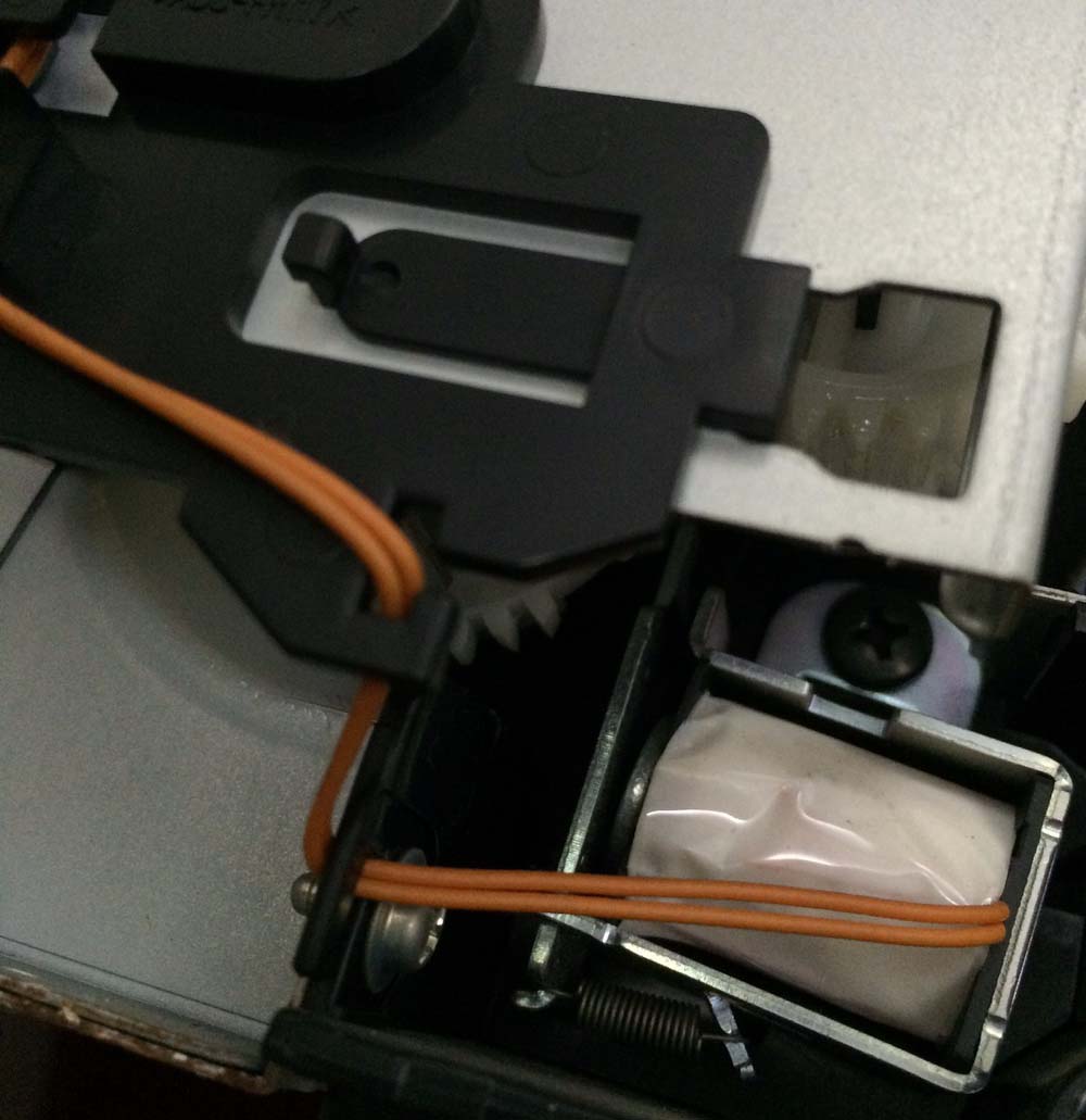 3、打開(kāi)側(cè)板后可以看到后下方的繼電器。把黃色線(xiàn)拔下,再把繼電器上的一個(gè)螺絲卸下。繼電器就可以輕松拿下來(lái)。這時(shí)就能看到那層退化的海綿,用橡皮擦把粘住的海綿全部擦干凈,就完成了。