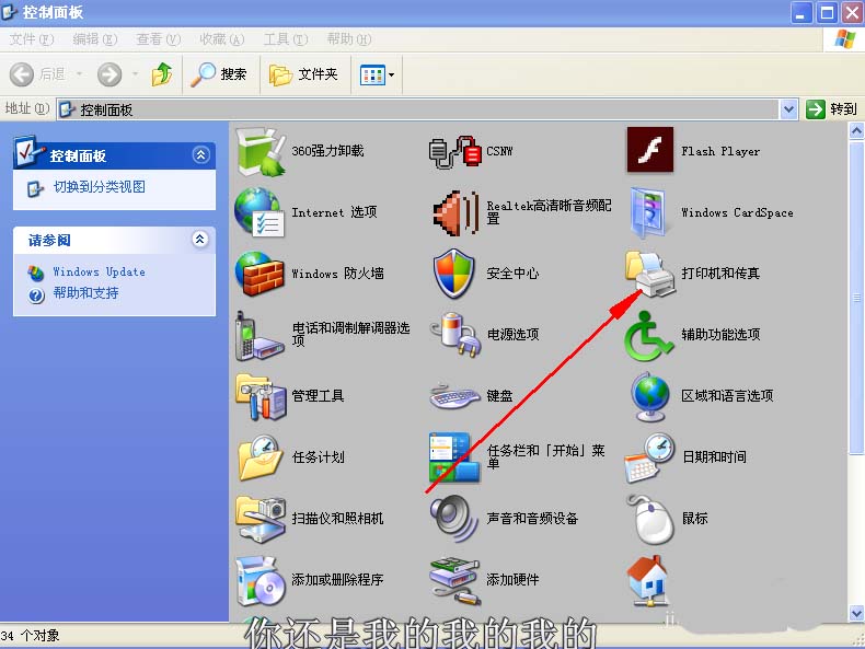 2、進入控制面板界面后,找到打印機和傳真,并點擊。