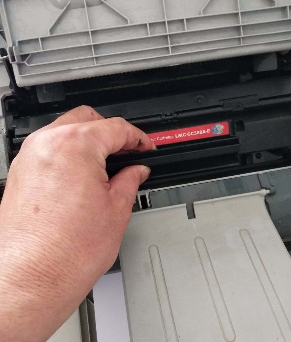 6、將裝好碳粉的碳盒放回打印機(jī)。啟動(dòng)打印機(jī),會(huì)有一個(gè)”確認(rèn)“過(guò)程。確認(rèn)后,可以測(cè)試打印。