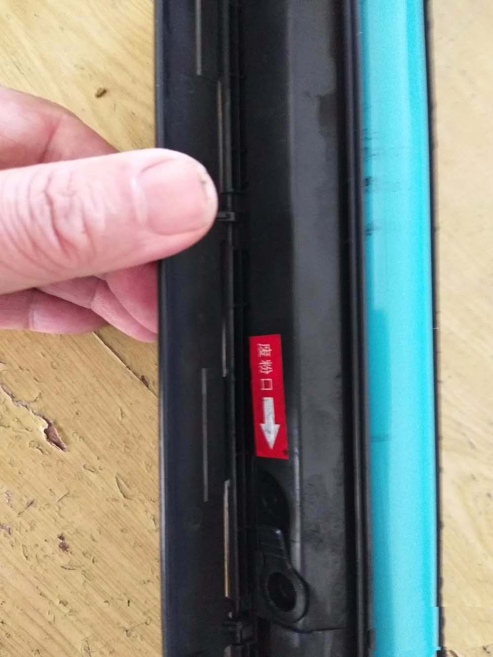 2、找到此處“廢粉口“,打開(kāi)塞子,將里面的”廢粉“倒出、倒凈。之后,將塞子塞好。