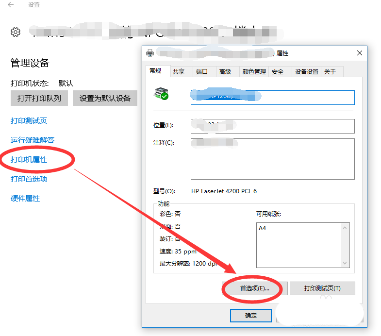 5、在驅動打印機屬性的常規頁面點【首選項】,接下來的設置就跟步驟2一樣了