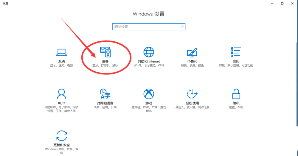 6、如果是win10系統還有一種方法可以設置,即打開設置界面(快捷鍵win+I或右下角通知欄下點所有設置),選擇【設備】