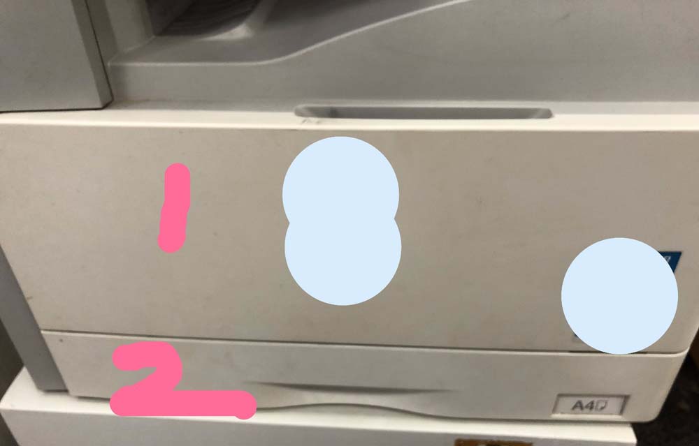 1、以圖示的復(fù)印機(jī)為例進(jìn)行說(shuō)明,序號(hào)一是墨盒位置,序號(hào)二是放置紙張的位置。