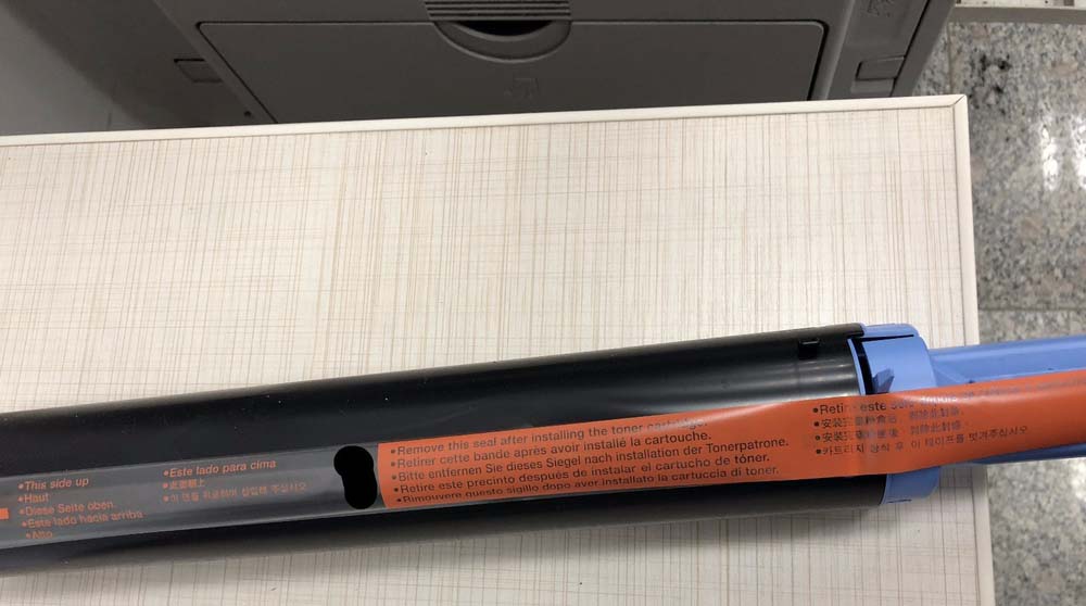 4、將新墨盒包裝小心拆掉,我們會(huì)看到一個(gè)密封條。這里建議購(gòu)買原裝的,有條件的話。