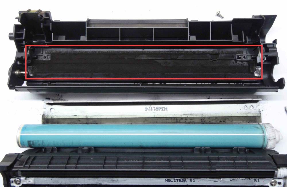 3、按箭頭方向一推,將粉倉和鼓芯部分分離