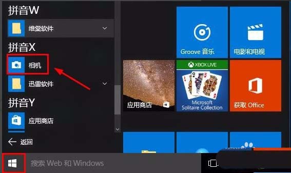 4、也可以點擊開始菜單所有應用中找到相機直接點擊打開。