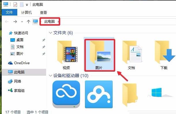 1、點擊此電腦然后打開圖片。