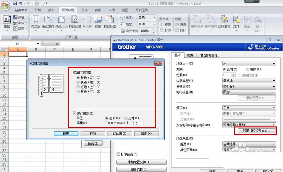 5、再點擊雙面打印設置,選擇需要的打印類型,點擊確定使設置生效。