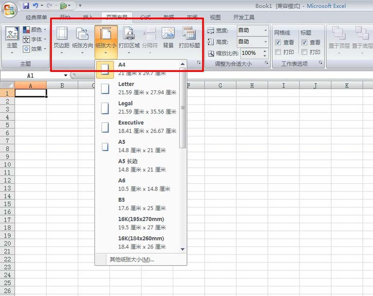 2、打印前先在頁面布局里設置好打印紙張大小、頁邊距等。