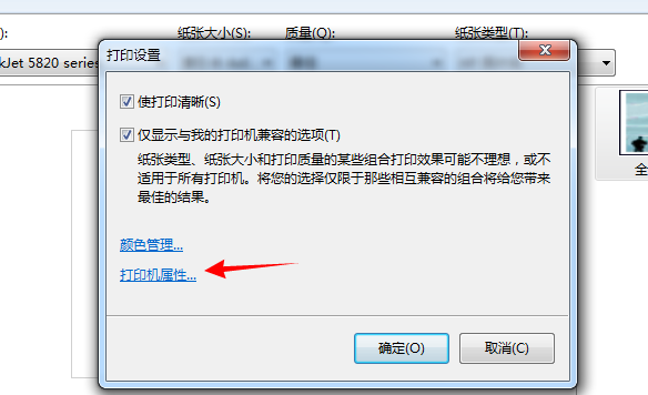 4、彈出打印機設置界面,選擇【打印機屬性】