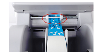4、腕帶需要正確安裝好,并卡緊。打印機進紙位限位片需要調節好,以免打印出來的腕帶走偏。打印完之后,腕帶對著撕紙口,輕輕撕下,不能用力拉扯。