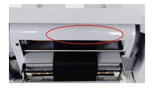 2、正確裝好碳帶盒,“Ribbon Box”指示朝上,碳帶盒需卡到位。特別是左側靠近電機的地方需卡到位,否則齒輪靠不到電機。當齒輪靠不到電機,碳帶沒有電機帶動,打印過程可能會卡。碳帶盒一定要卡進去,聽到左右兩側都有“嗒”一聲,碳帶盒才是裝好了。如果碳帶盒沒有卡到位,會造成打印過程中有異響。