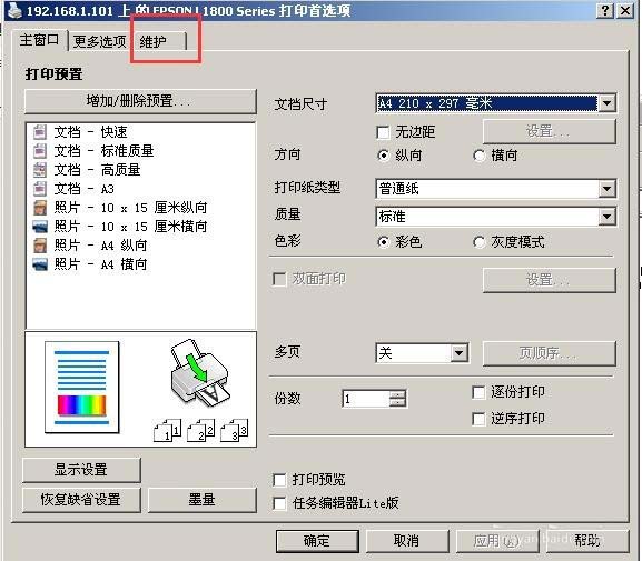 epson l1800 series打打印機打印的圖顏色不準或者是一段一段的中間有線,這種情況就該清洗打印頭了,下面我們就來看看愛普生L1800打印機清洗打印頭的教程。