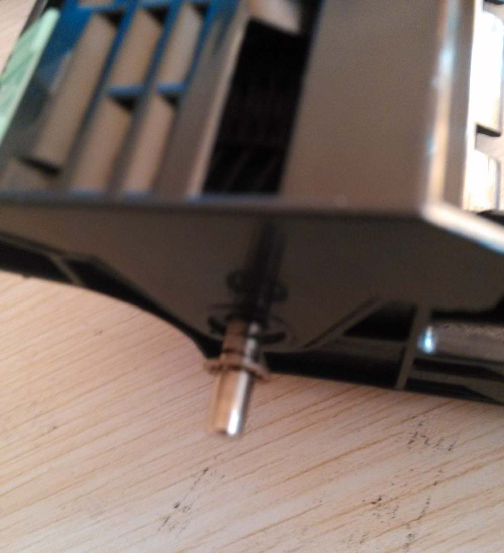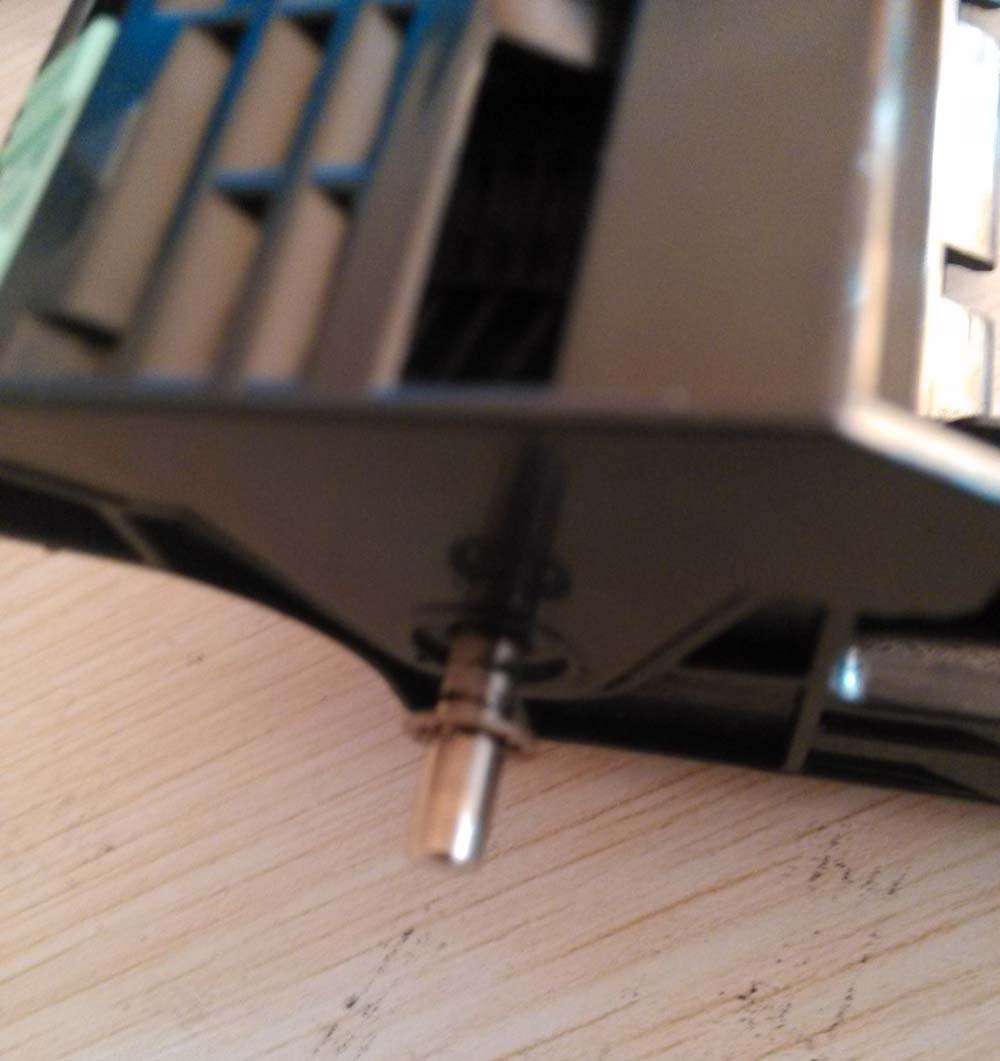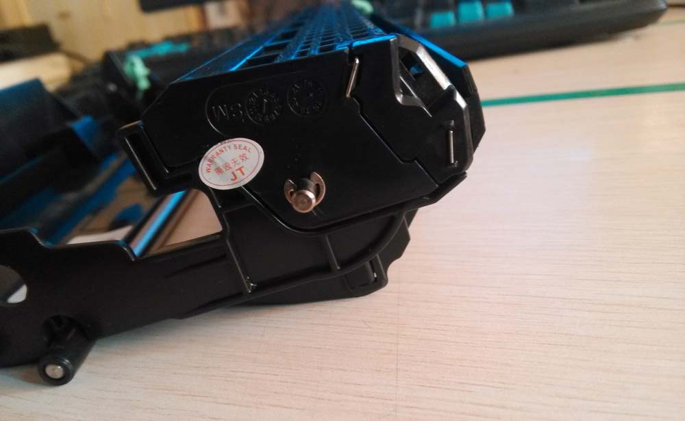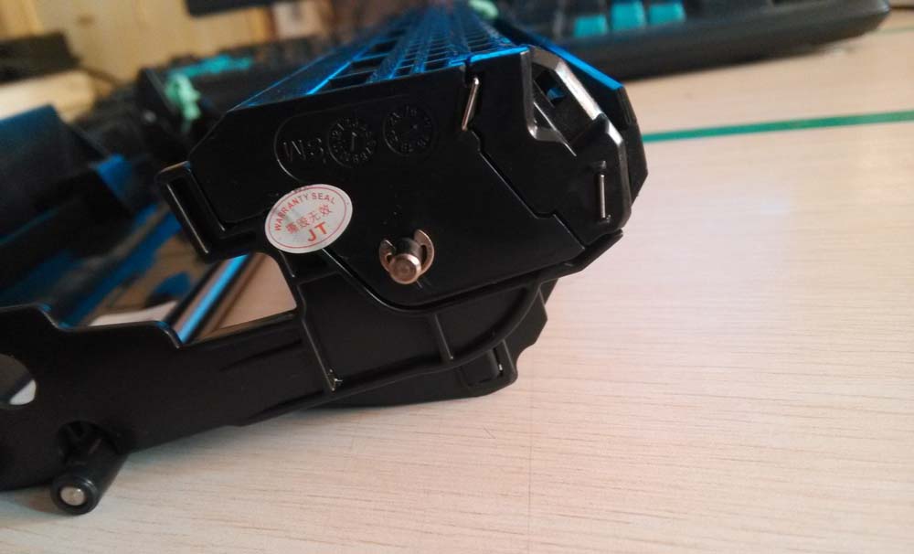 2、將硒鼓邊緣的卡扣用螺絲刀去掉。注意別蹦到地上。