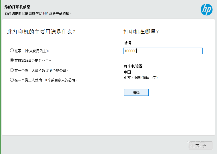 10、網(wǎng)絡(luò)打印機(jī)安裝完畢后,將會(huì)彈窗打印機(jī)信息的界面。此處的信息是填寫(xiě)打印機(jī)的用途和打印機(jī)的郵編。按實(shí)際情況填上即可。